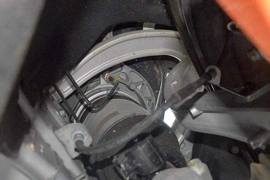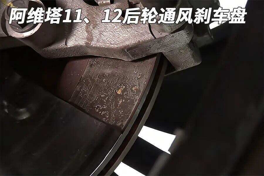 这辆车的后刹车盘是实心盘,而之前拆过的阿维塔11和12的后轮刹车盘是散热更好的透风盘,究其原因可能是这辆车更小、更轻、更低廉。