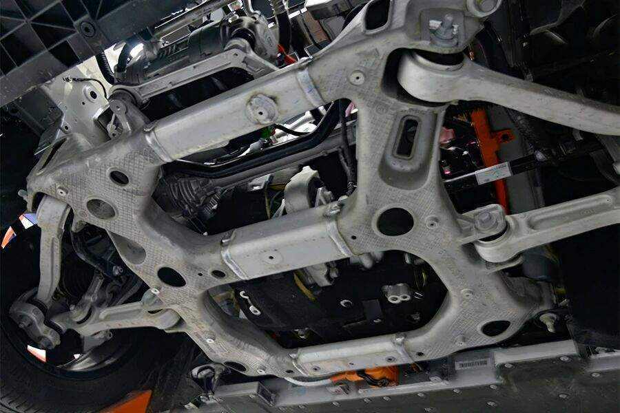 除了前车身是铝合金一体大压铸除外,这辆车的后车身亦然铝合金一体压铸工艺。