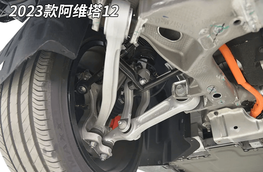 后悬主摆臂是一个粗壮的中空铝合金块,这种铝合金摆臂不仅分量轻,而且弹性模量大,会有更好的行驶质感。后悬络续了阿维塔12的打算,与阿维塔11的钢板五连杆后悬并不同样。