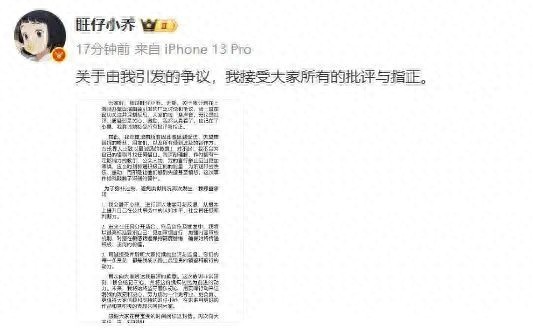 7月26日晚欧洲杯体育,千万粉丝网红@旺仔小乔 通过微博发文说念歉:对于由我激勉的争议,我禁受世界扫数的月旦与指正。