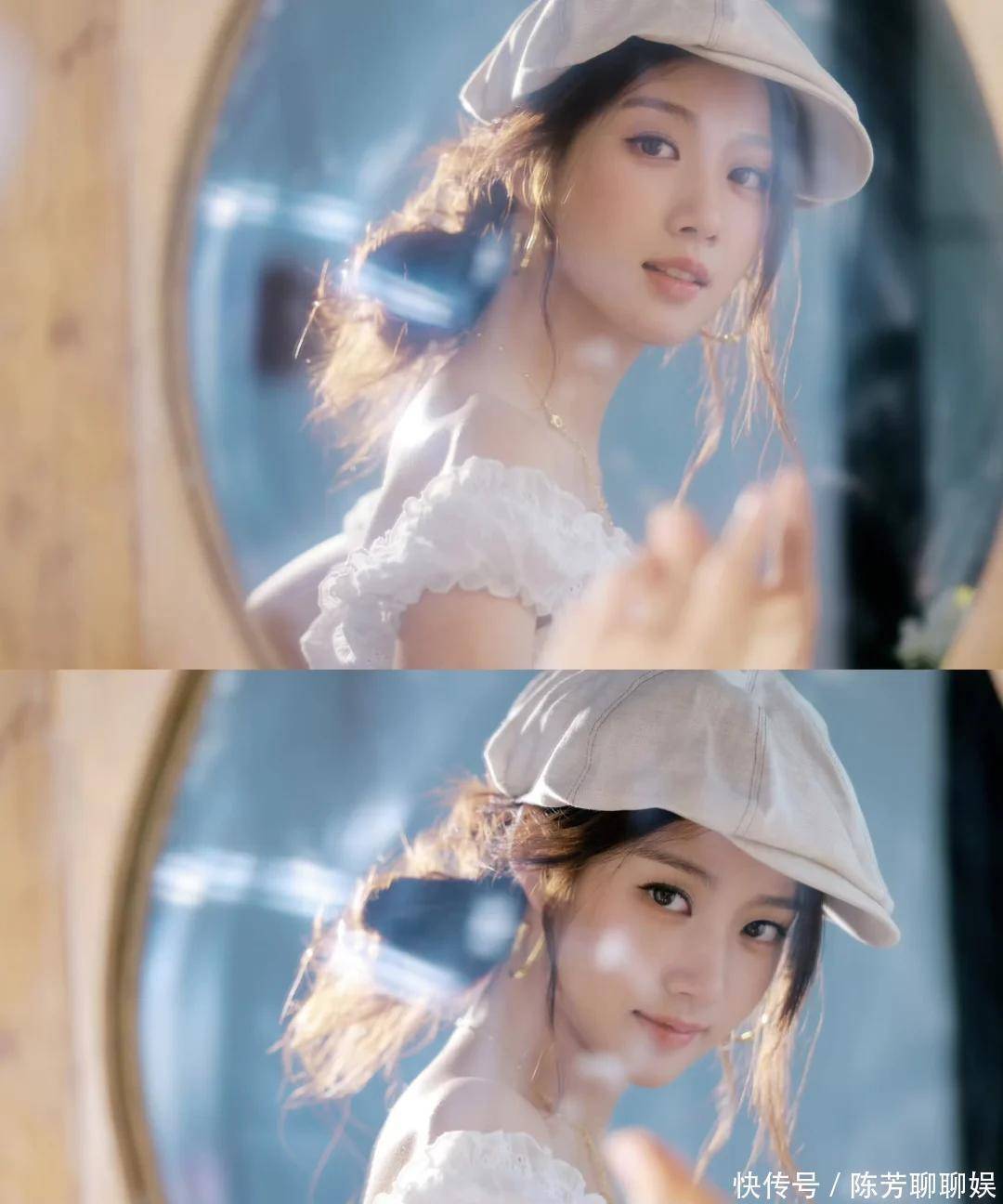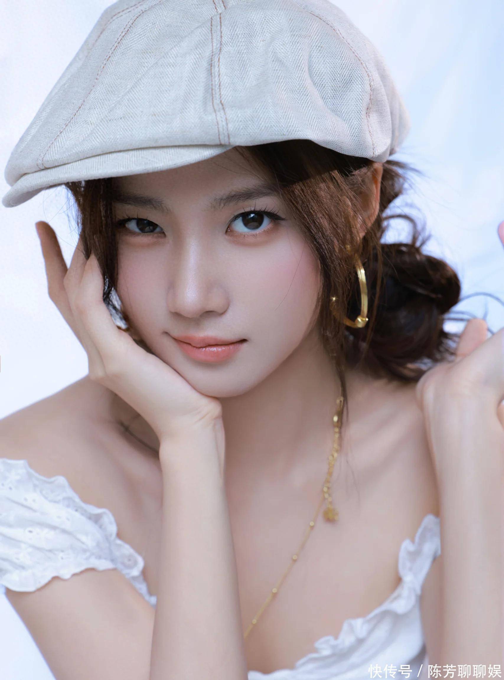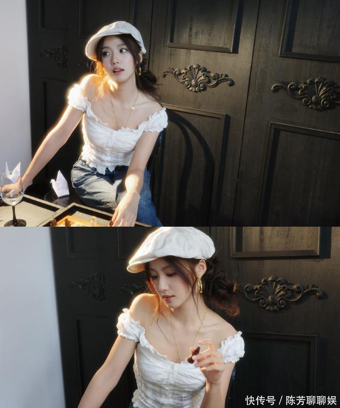 卢昱晓这个妆造简直梦回夏之星,贝雷帽配大圈耳饰,白色一字肩锁骨杀,这不即是古早台偶女主本主吗?