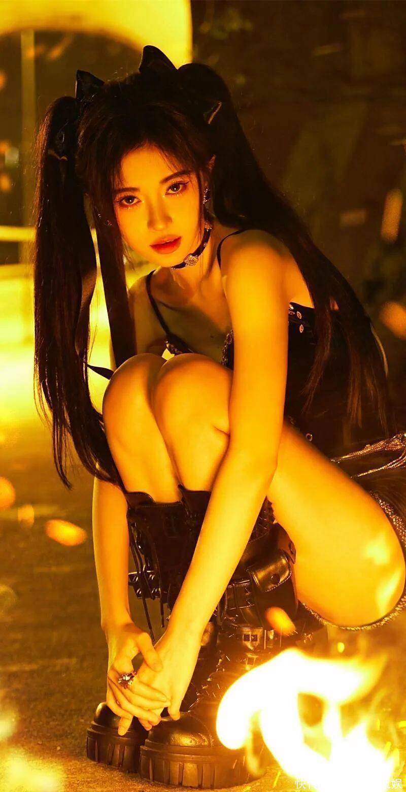 鞠婧祎穿戴玄色衣裤,她长发梳成马尾巴,蹲在地上的格式很娇媚,泄露皎白的香肩和傲东谈主的大好意思腿,再加上黄色的灯光照射,悉数性感火辣!