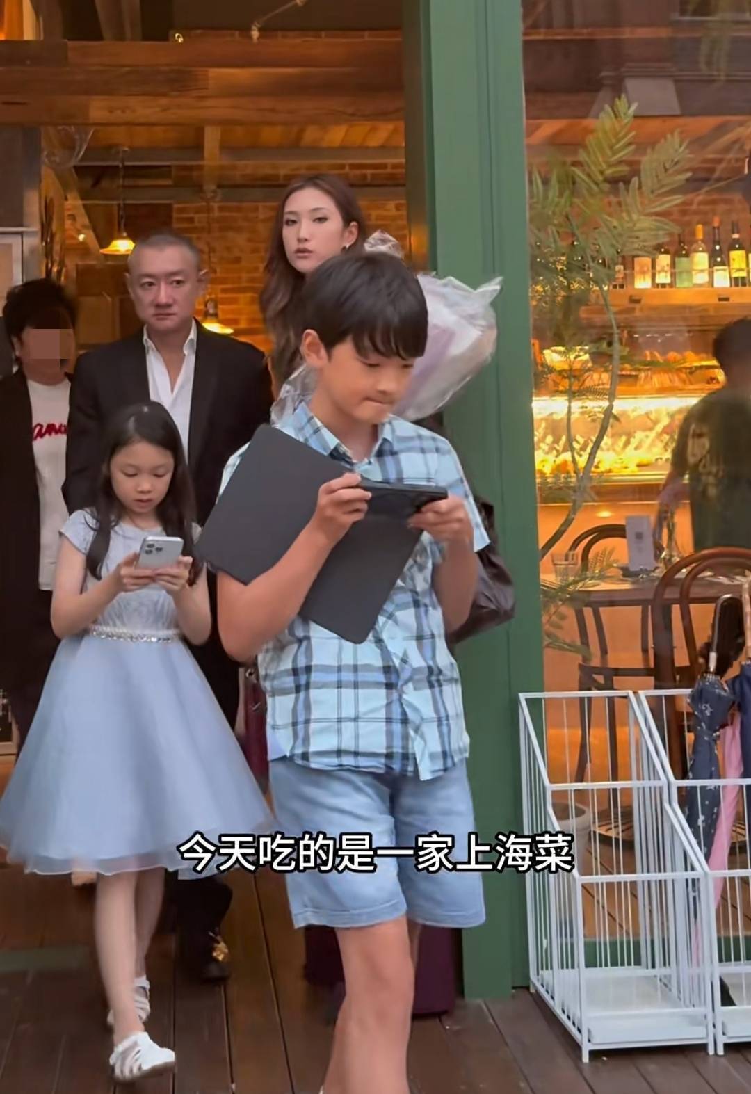 画面中还出现了一个瘦高的小男孩,边走路边抱着平板电脑,长相与汪雨极为同样——这即是此前已被媒体曝光过的男儿。