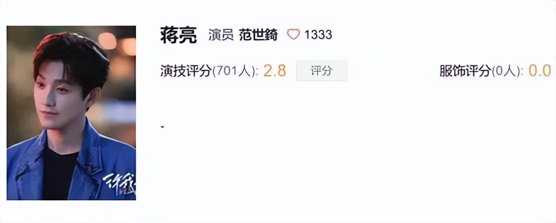 其实在本年的《蛮好的东谈主生》中,范世琦亦然这一套一成不变的献艺,套路化的邪派式献艺真的让东谈主看腻了,是以他在《许我宝贵》中的演技评分仅有2.8分,名次垫底。