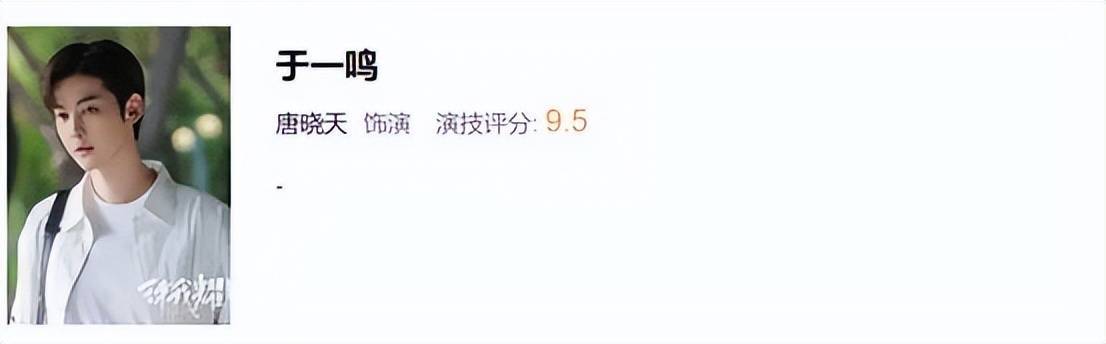 唐晓天在剧中的献艺其实莫得太大的气象震动,长期透着耐心不迫的滋味,不外有东谈主设加成演技也可圈可点,拿到9.5分的演技评分就解说了不雅众对他的喜爱之情。