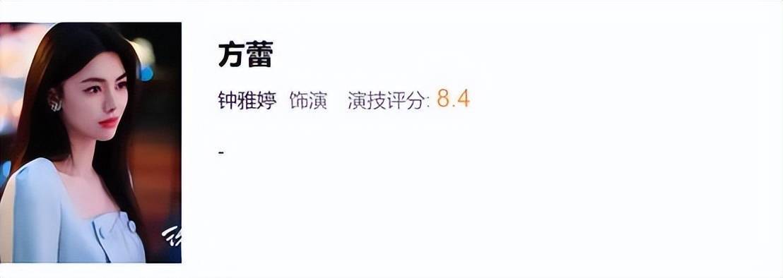 钟雅婷把方蕾渴慕爱情,又数次失落的极致虐恋感给演了出来,演技拿到8.4分收货称得上可圈可点。
