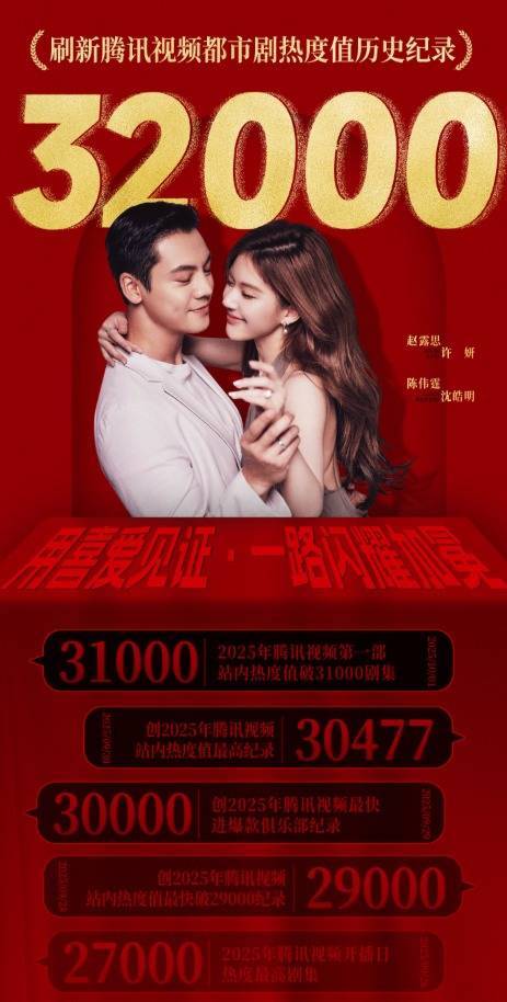 该剧自开播起热度就直线飙升,后续热度峰值更是直破32638,刷新了鹅厂站内皆市剧历史记载,真的太牛了。