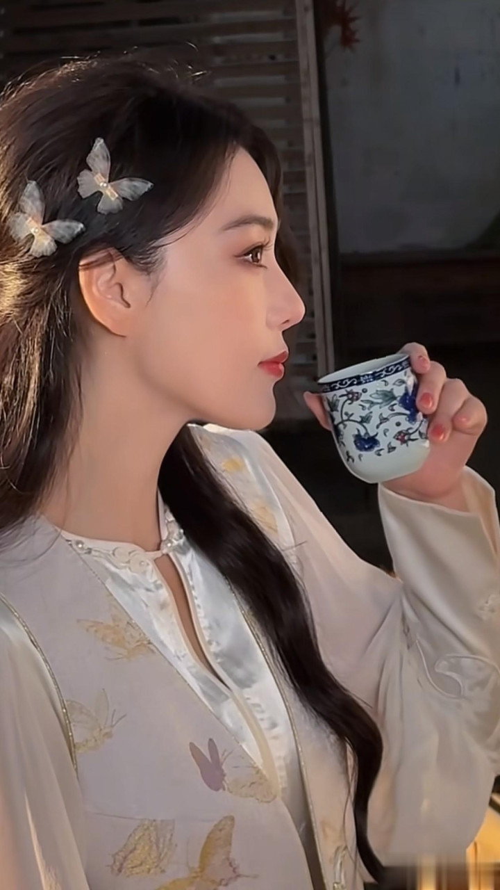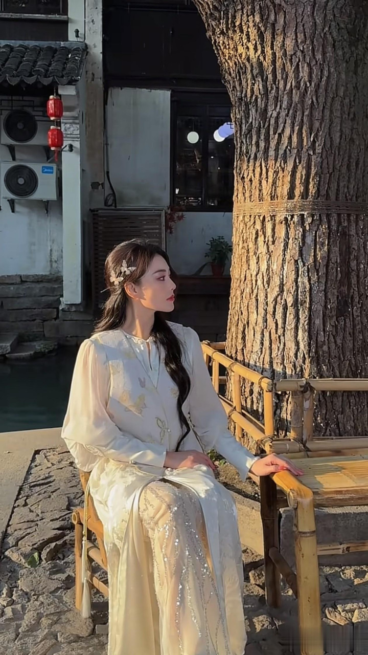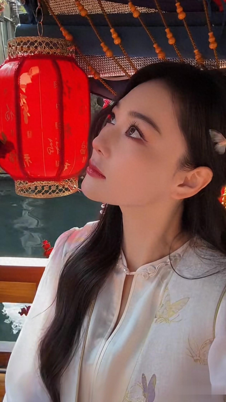 此次她去的是周庄古镇,坐船、喝茶时的她展现出无缺侧颜,下颌线明晰,妆容细致,险些太好意思了。