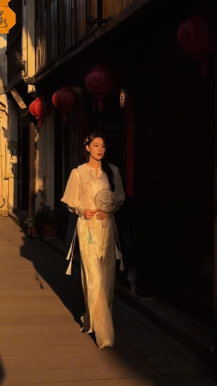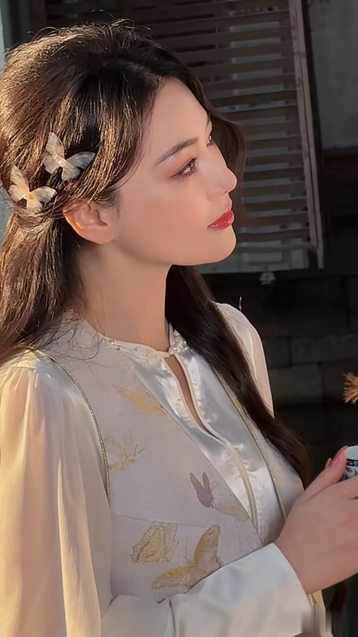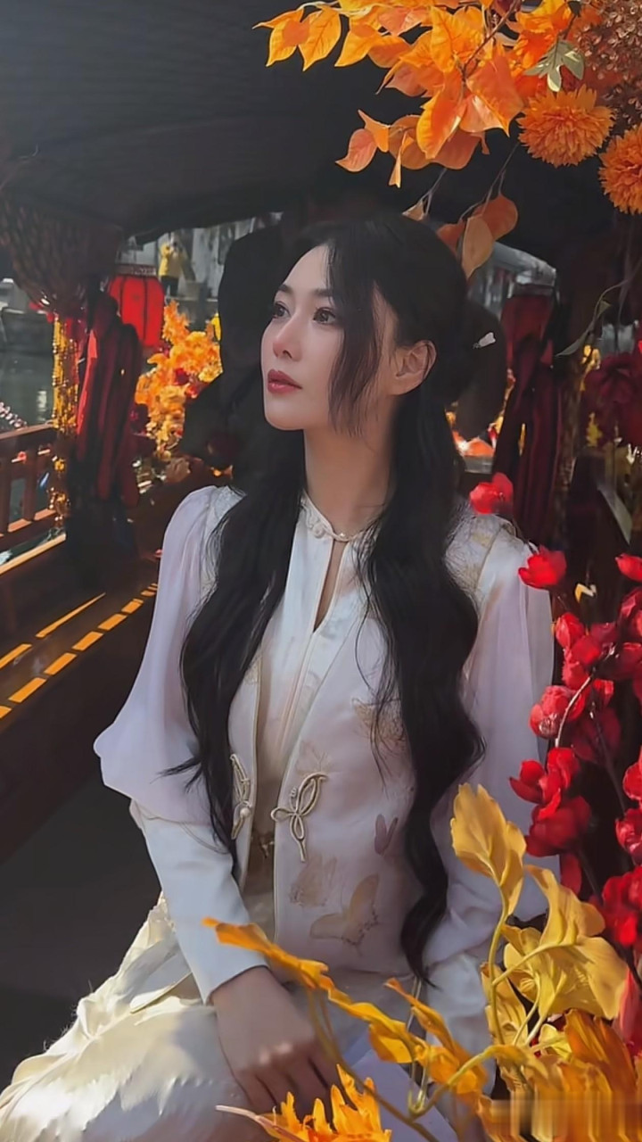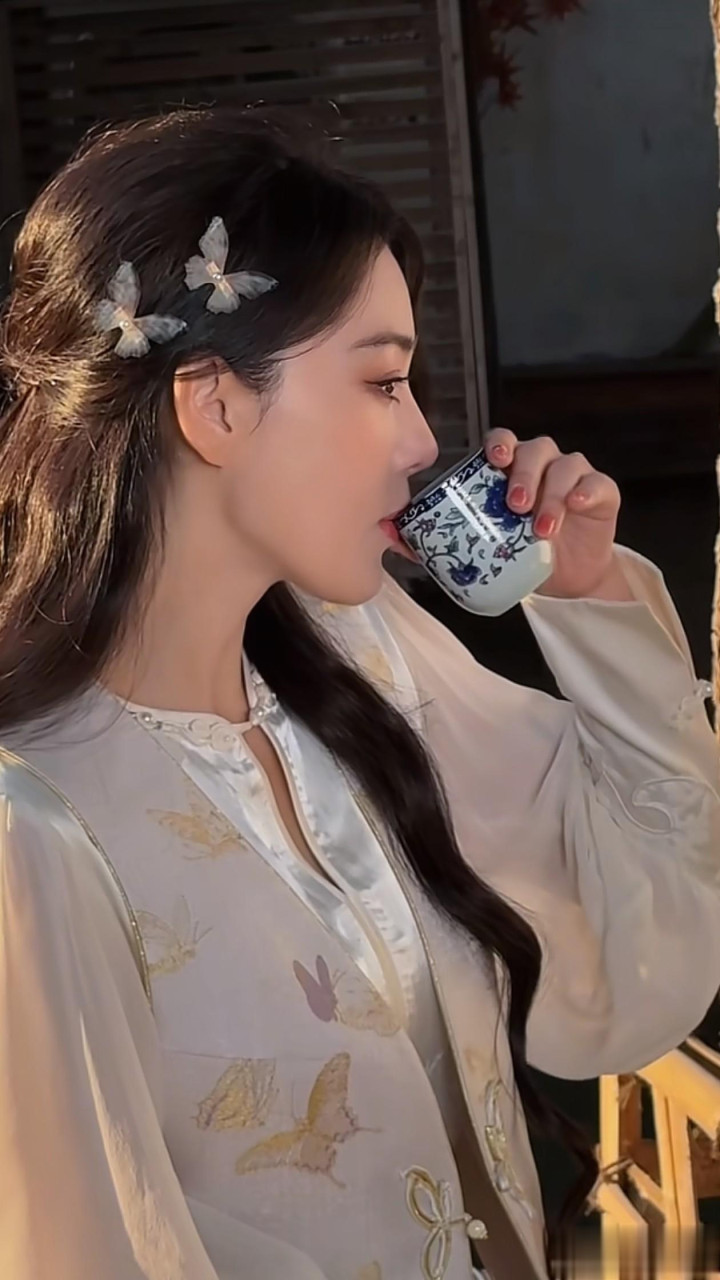此次她去的是周庄古镇,坐船、喝茶时的她展现出无缺侧颜,下颌线明晰,妆容细致,险些太好意思了。