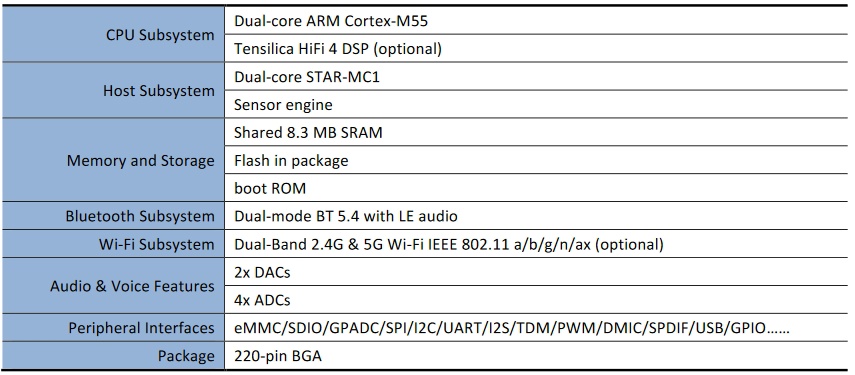该芯片可利用于带 ANC 的智能 Wi-Fi 和蓝牙耳机 / 游戏耳机、具有及时自妥贴 ANC 的智能 TWS 耳塞、智能无线音箱、智能眼镜、其他便携式音频配置等,特色 / 规格如下: