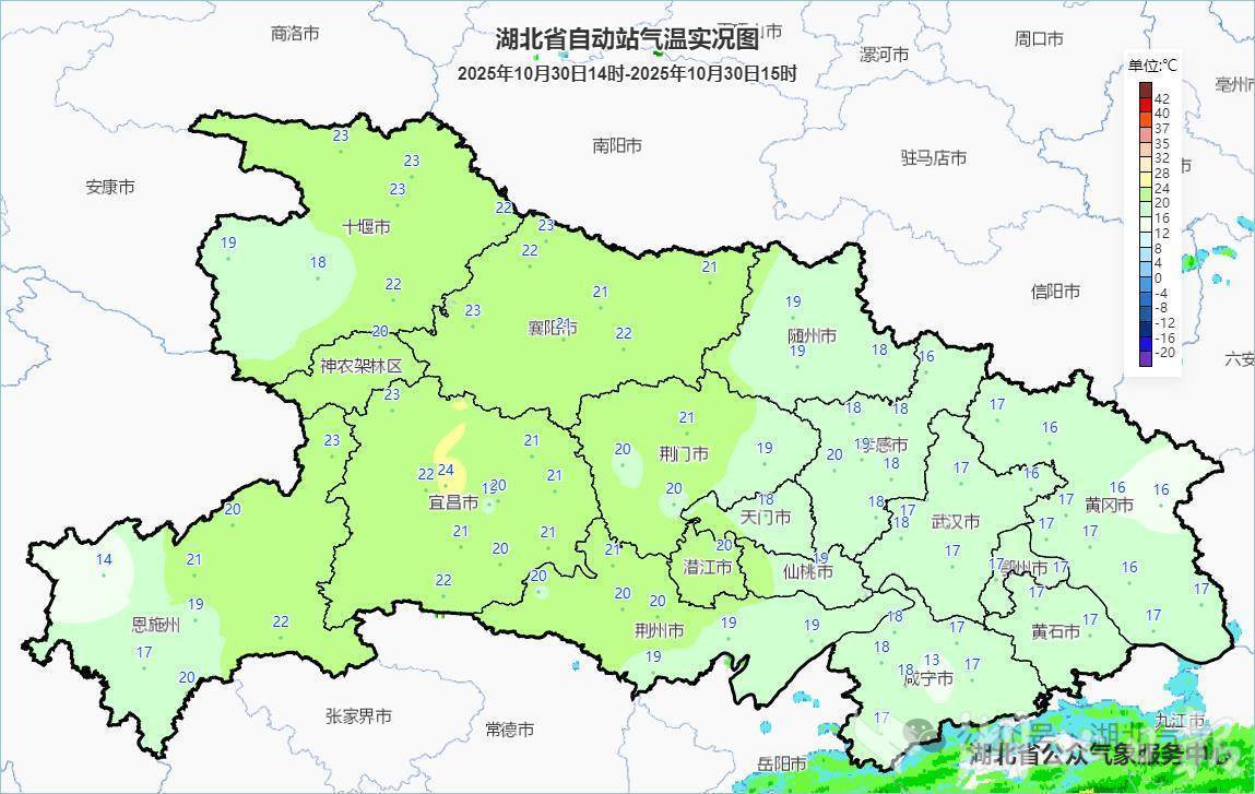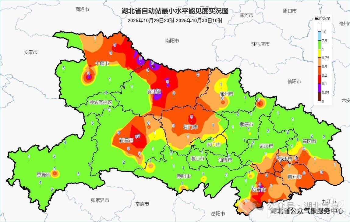 湖北日报讯(记者曾莉)10月30日清晨,十堰、襄阳、恩施、宜昌、荆门、黄冈、黄石、咸宁等55个州里出现局地浓雾,老河口最稚鄙见度不及50米。上昼,南部局地和东部地区有弱降水出现,午后雨水渐停转为阴天,15时东部地区气温下滑2至6℃,大量在15至19℃,西部地区则在20至23℃。好在此轮降水往复无踪,预测改日三天,鄂西南地区有小雨,其他地区以多云为主。